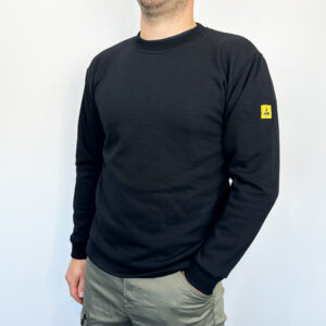 01-0305-001BLU Fekete, uniszex ESD pulóver kerek gallérral, XS-3XL