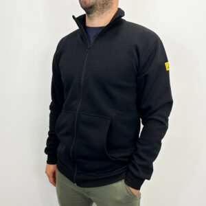 01-0305-040BLU Fekete, uniszex ESD pulóver zipzárral és zsebekkel, XS-3XL